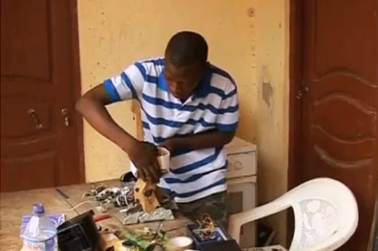 Student in TOGO, Africa builds a working a robot out of junk parts.